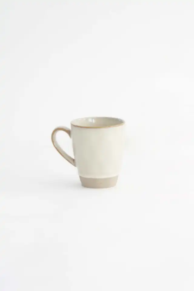 taza de ceramica para café mediano color beige borde dorado