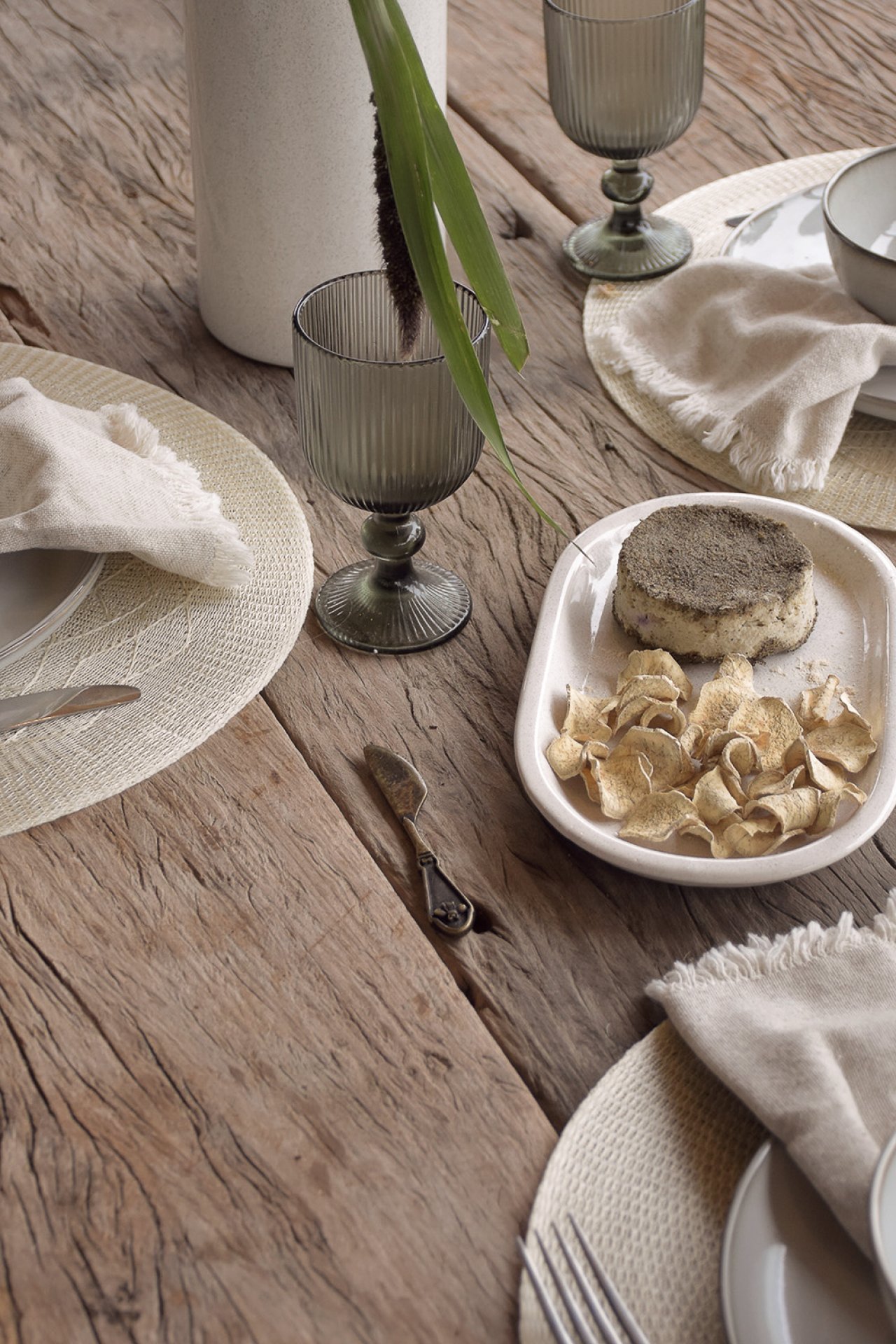bandeja de cerámica artesanal color beige con pintitas, medidas aprox 25cm x 15cm