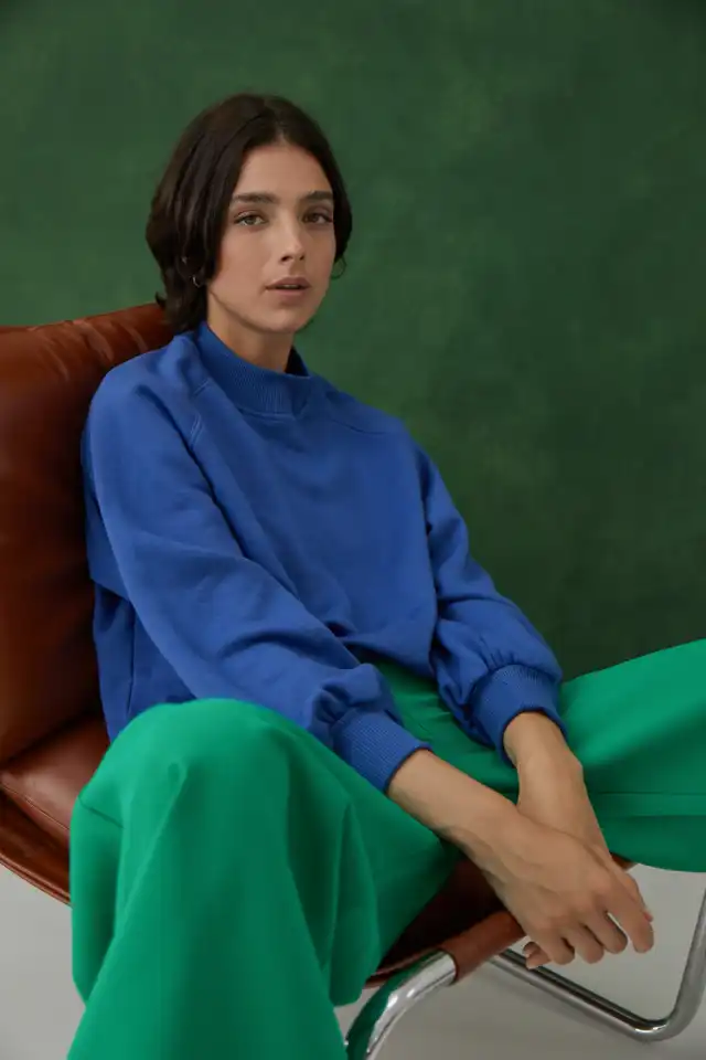 Buzo de friza con cuello media polera y complemento al tono. Fabricada con 40% algodón 30% viscosa 30% poliester. Esta prenda cuenta con manga ranglan, puños de cuello, manga y ruedo cuentan con complemento (ribb) al tono. Molderia holgada, viene del talle 1 al 3. Largo total de hombro a ruedo: 60 cm (talle 1).