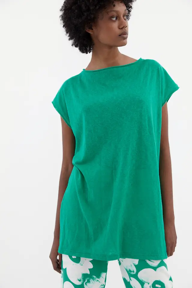 Remerón de escote bote. Esta prenda es ideal para la playa, post pileta o uso diario. Confeccionada con nuestros textiles de punto diferenciados, es tramado al tacto y rústico. Con tajos de 25 cm en los laterales, es una tipología oversize que viene en 2 talles, talle 1 abarca los talles 1,2 y 3. El talle 2 abarca los talles 4 y 5.