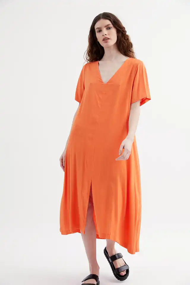 Vestido midi confeccionado en simil lino, rayon
