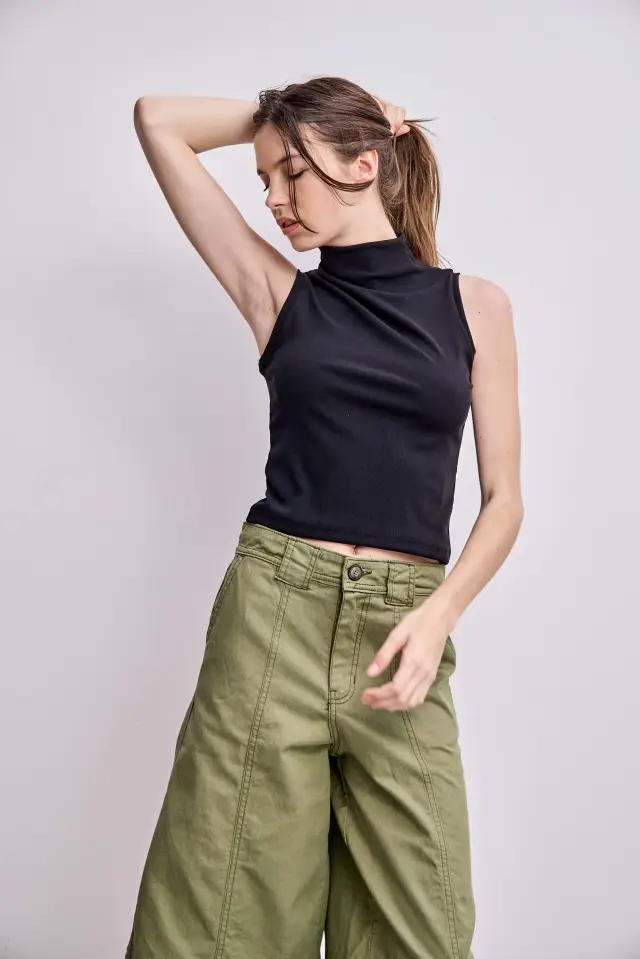 ter y 40% algodón. De silueta super slim, se adhiere al cuerpo. Musculosa con cuello