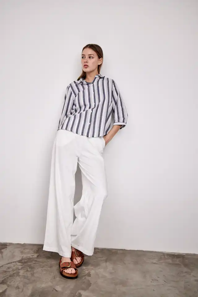 Camisa basica rayada confeccionada en 70% algodón 20%