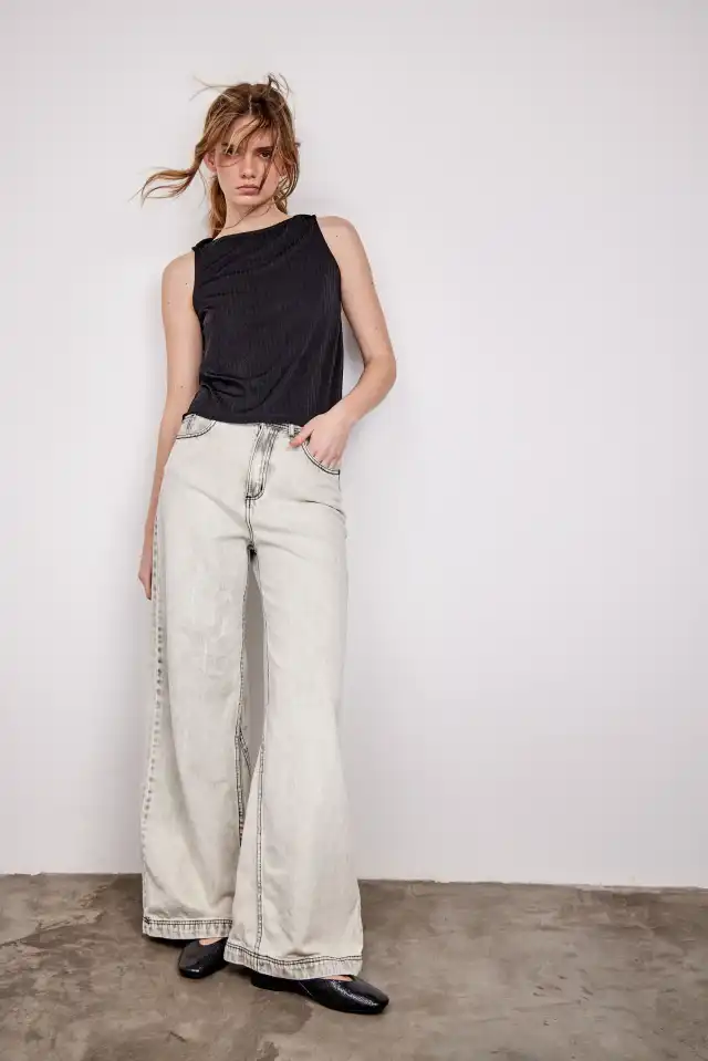 Musculosa con cuello bote. Largo total de la prenda de hombro a ruedo: 50 cm en