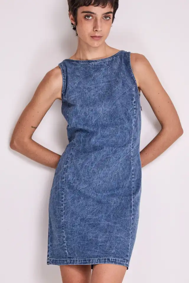 Vestido de calce jackie confeccionado en denim rigido camisero