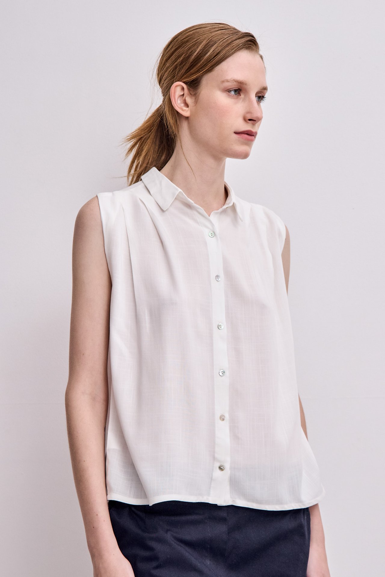 botones nacar a modo de detalle y tablas en el hombro delantero