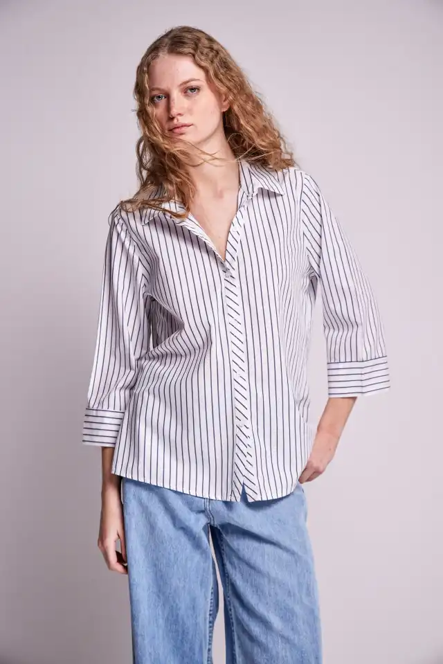 al cuerpo, de mangas 3/4 con puño ancho y con rayas a