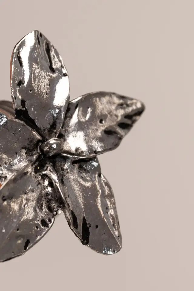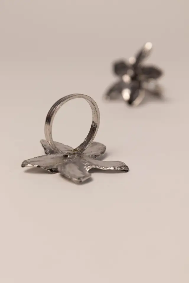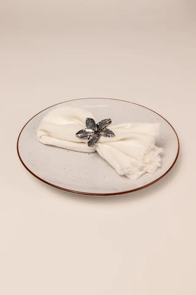 SERVILLETERO INDIVIDUAL EN FORMA DE ANILLO DE METAL CON DISEÑO DE FLOR.