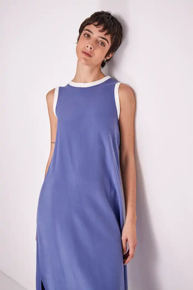 Vestido sin mangas largo midi de plano en combinacion con puño en escote y sisa