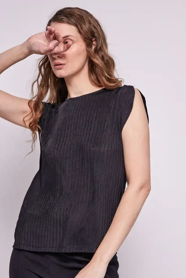 Remera confeccionada con genero de punto, compuesta por 91% poliester 9% spandex. Esta prenda pertenece a nuestra linea de noche, de silueta holgada, no se adhiere al cuerpo. El textil es un morley con brillos al tono, con buena caida, generada por la cantidad de spandex. Con cuello redondeado abierto, y mangas con tajos, que permiten ver el hombro tapando la parte inferior del brazo, en la sisa. Largo total de la prenda de hombro a ruedo: 64 cm en talle 1 (crece 2 cm aprox por talle)