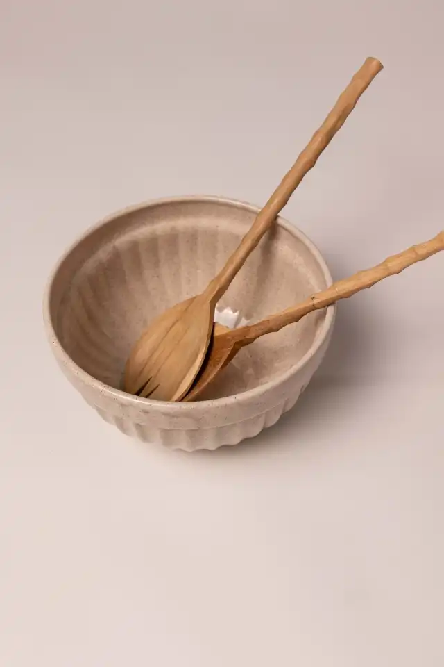 Ensaladera de cerámica acanalada.