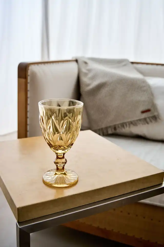 Copa de vidrio labrada color ámbar.