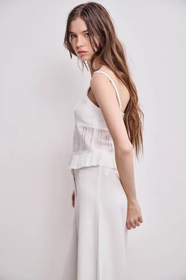 Top con breteles ajustables y recortes confeccionado en 50 % rayon 50% algodon. El modelo viene en una sola variante. El largo total de hombro a ruedo es de 55 cm en talle 2.