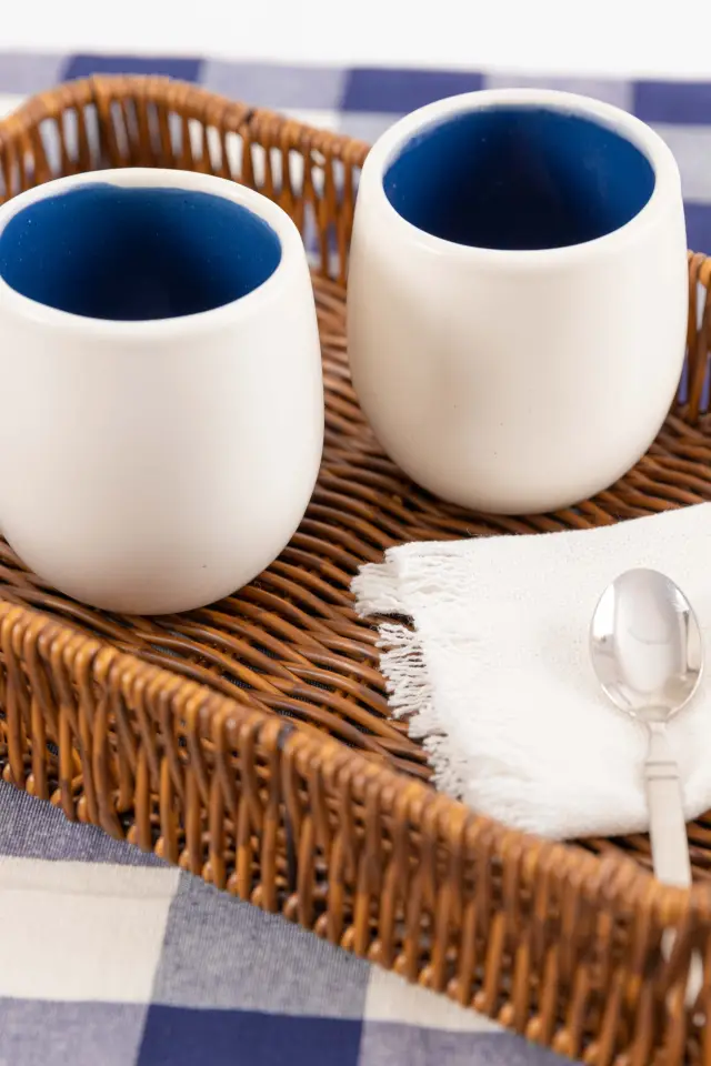 Taza sin asa de cerámica combinada en dos tonos. Tamaño: 6*8,5CM