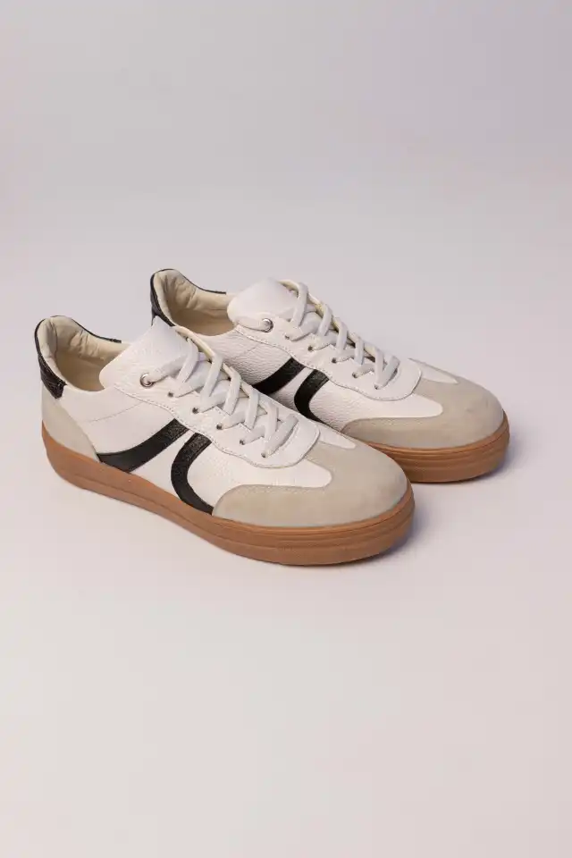 Zapatilla 100% cuero, combina recortes de gamuza y cuero granulado para un diseño único. Disponible en dos tonos.