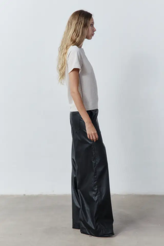 por 96% poliester 4% spandex. De silueta regular