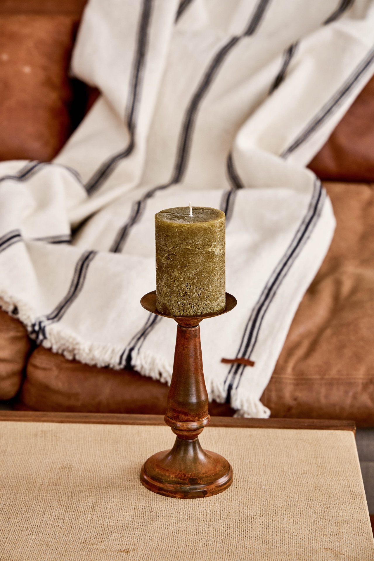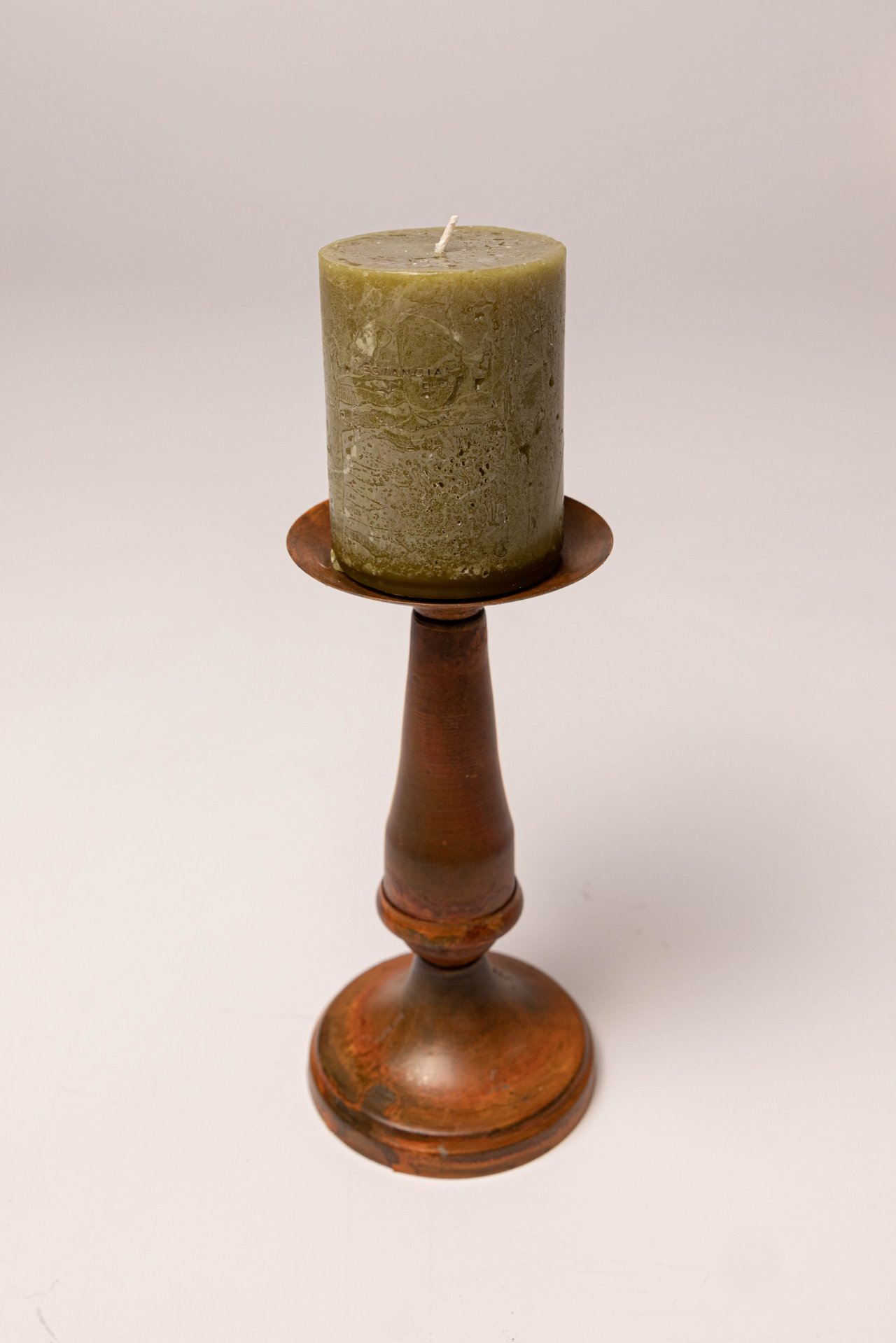 Candelabro de metal, del tipo clásico en color oxido. Única variante disponible.