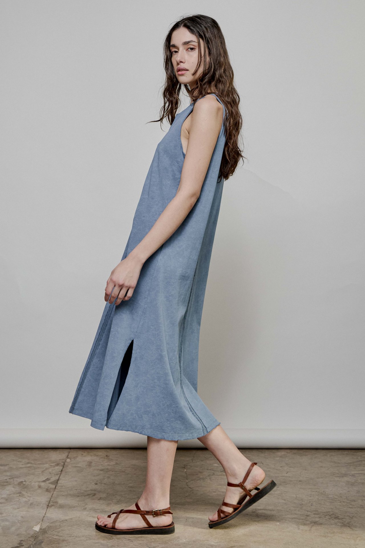 midi, pasando la rodilla y con tajos en los laterales. Cuenta