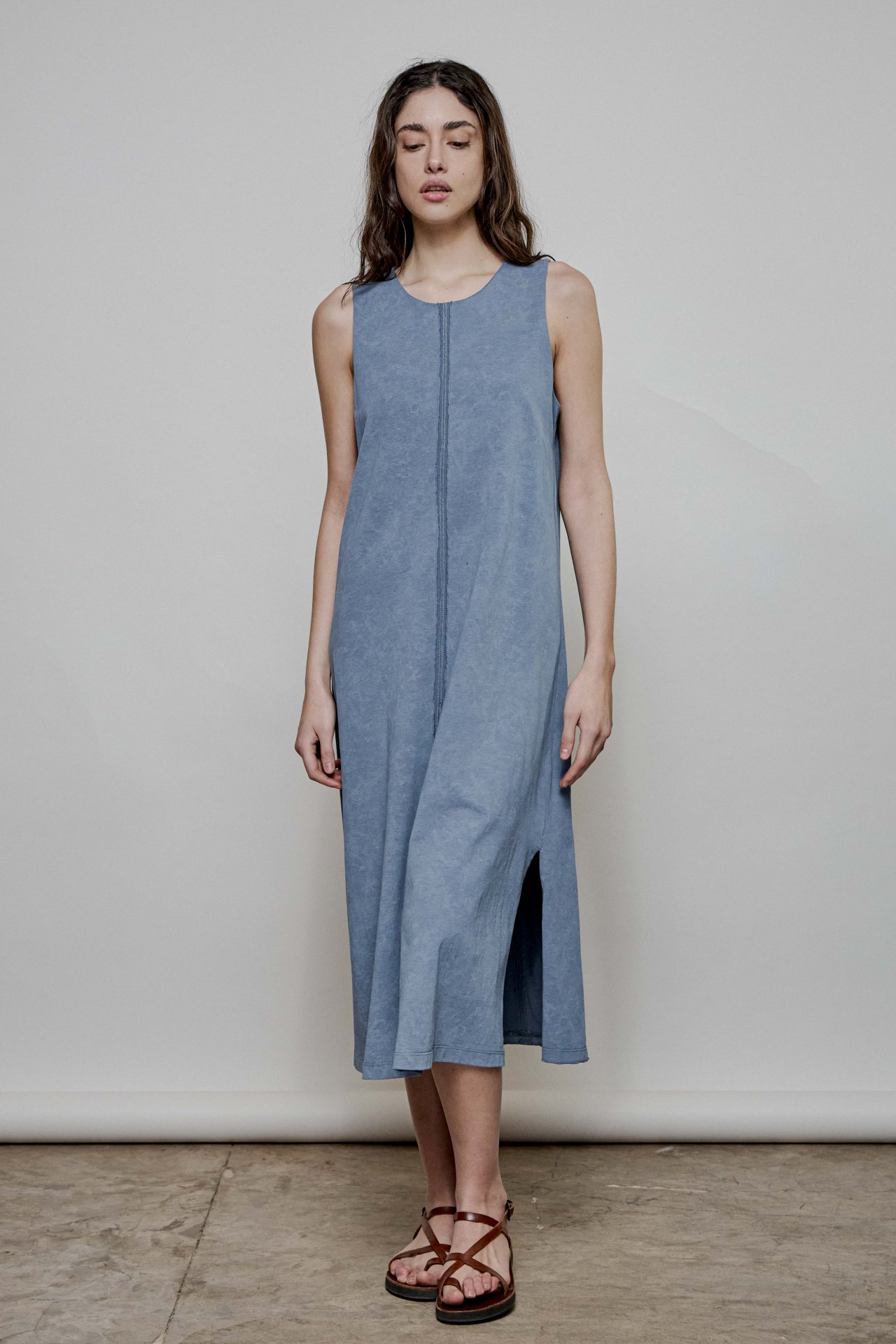 100% algodón. Vestido con escote redondeado, de largo
