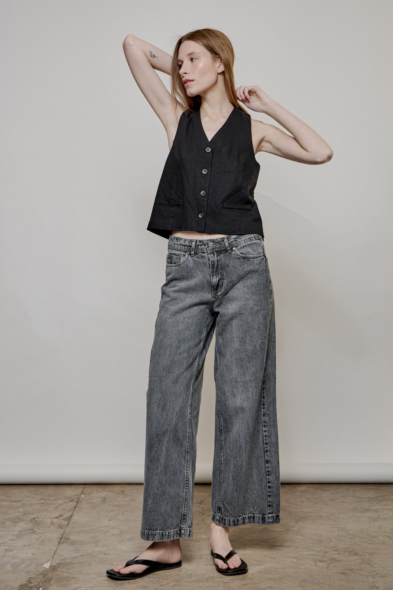 Jean tiro medio 5 bolsillos de calce recto-wide.