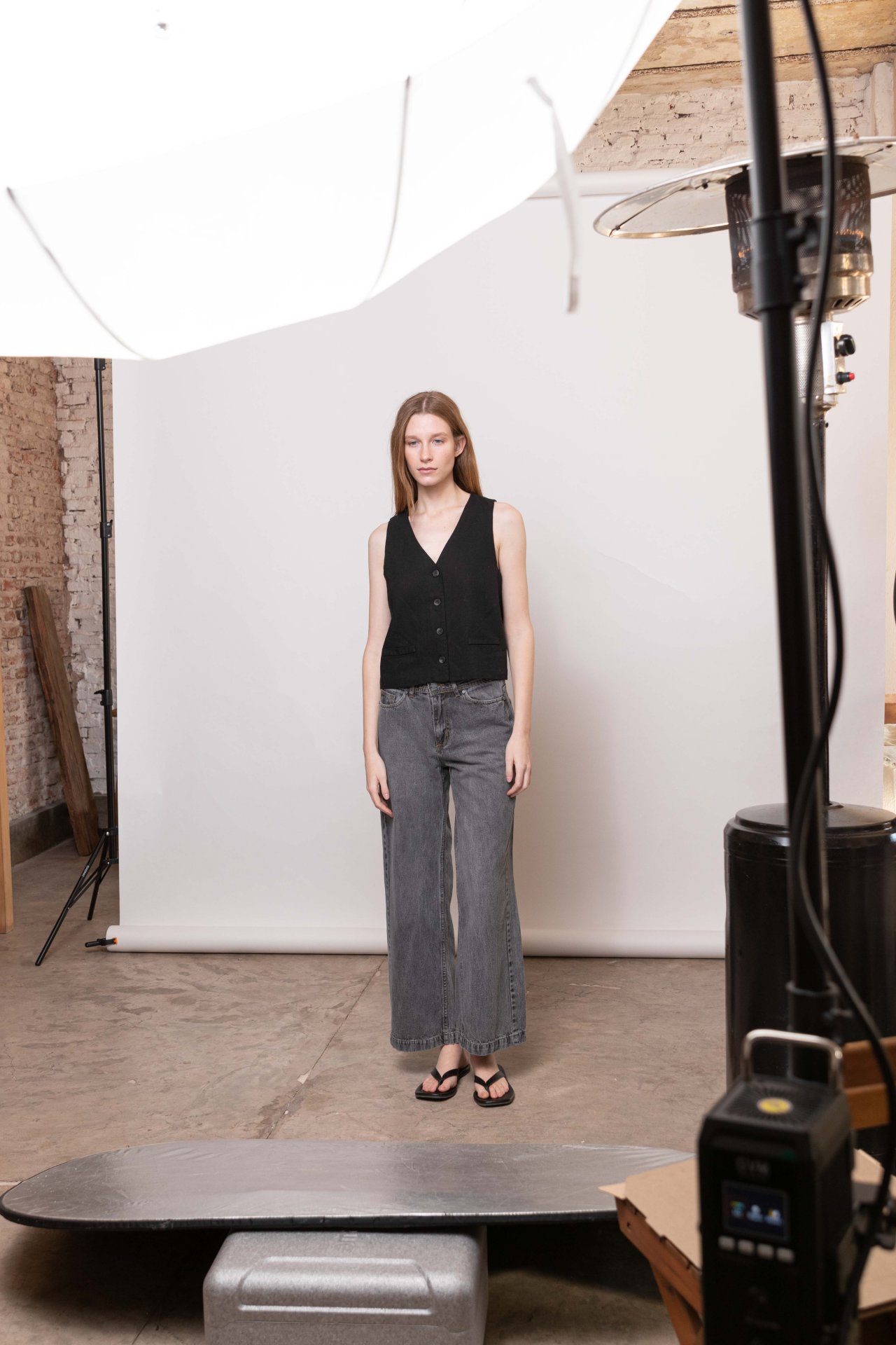 lavado es intermedio, bajado a gris, con hilo camel. Su largo