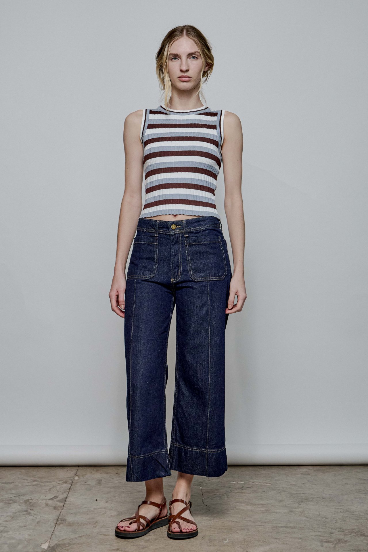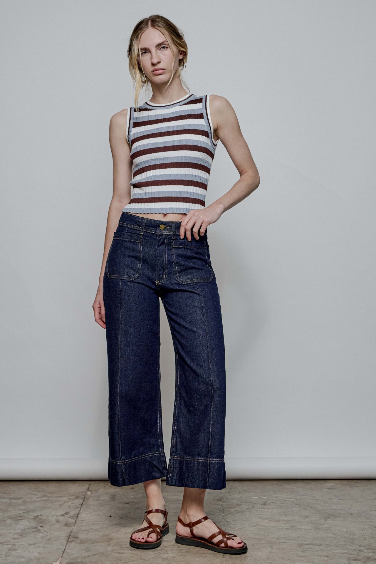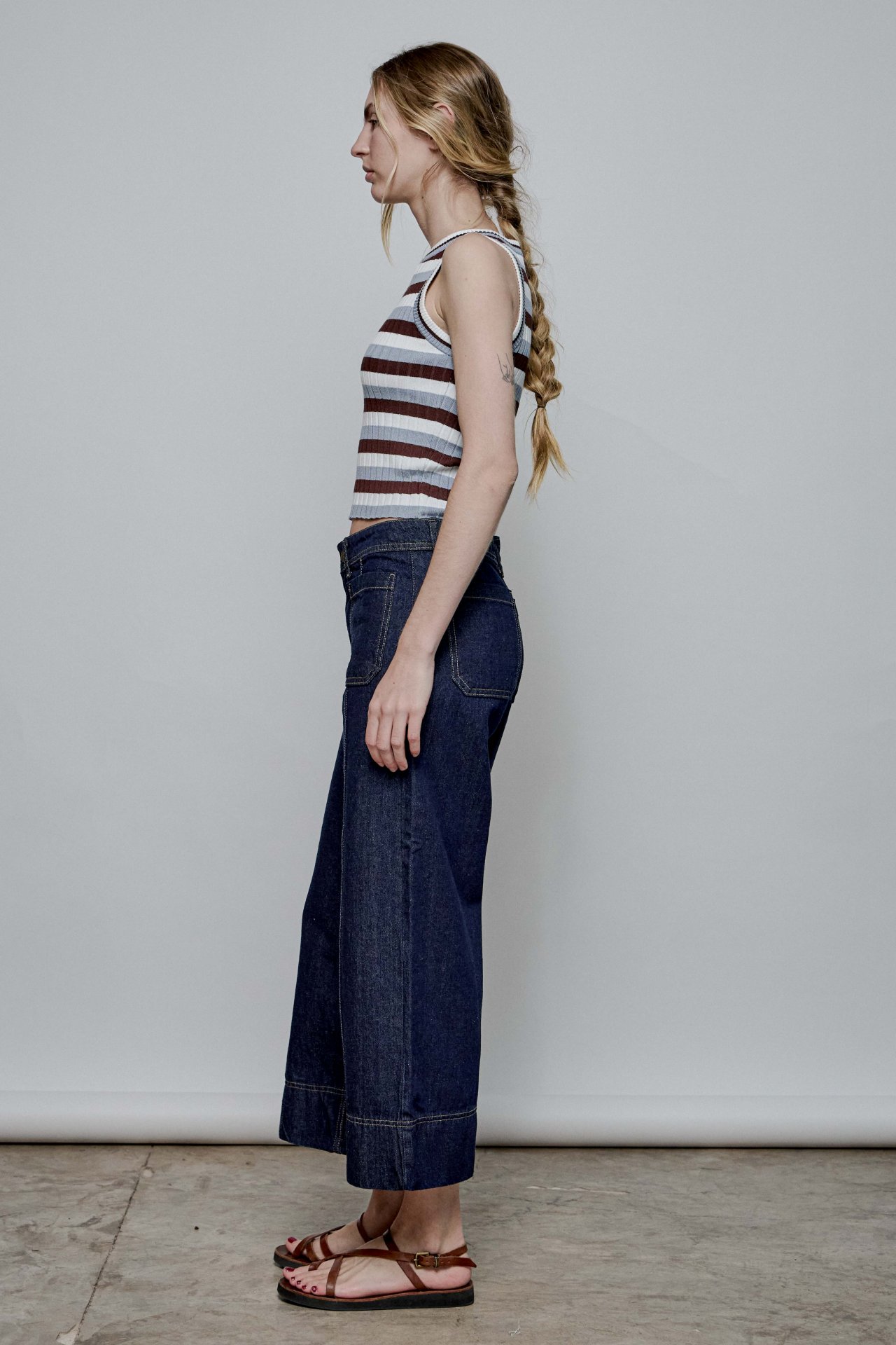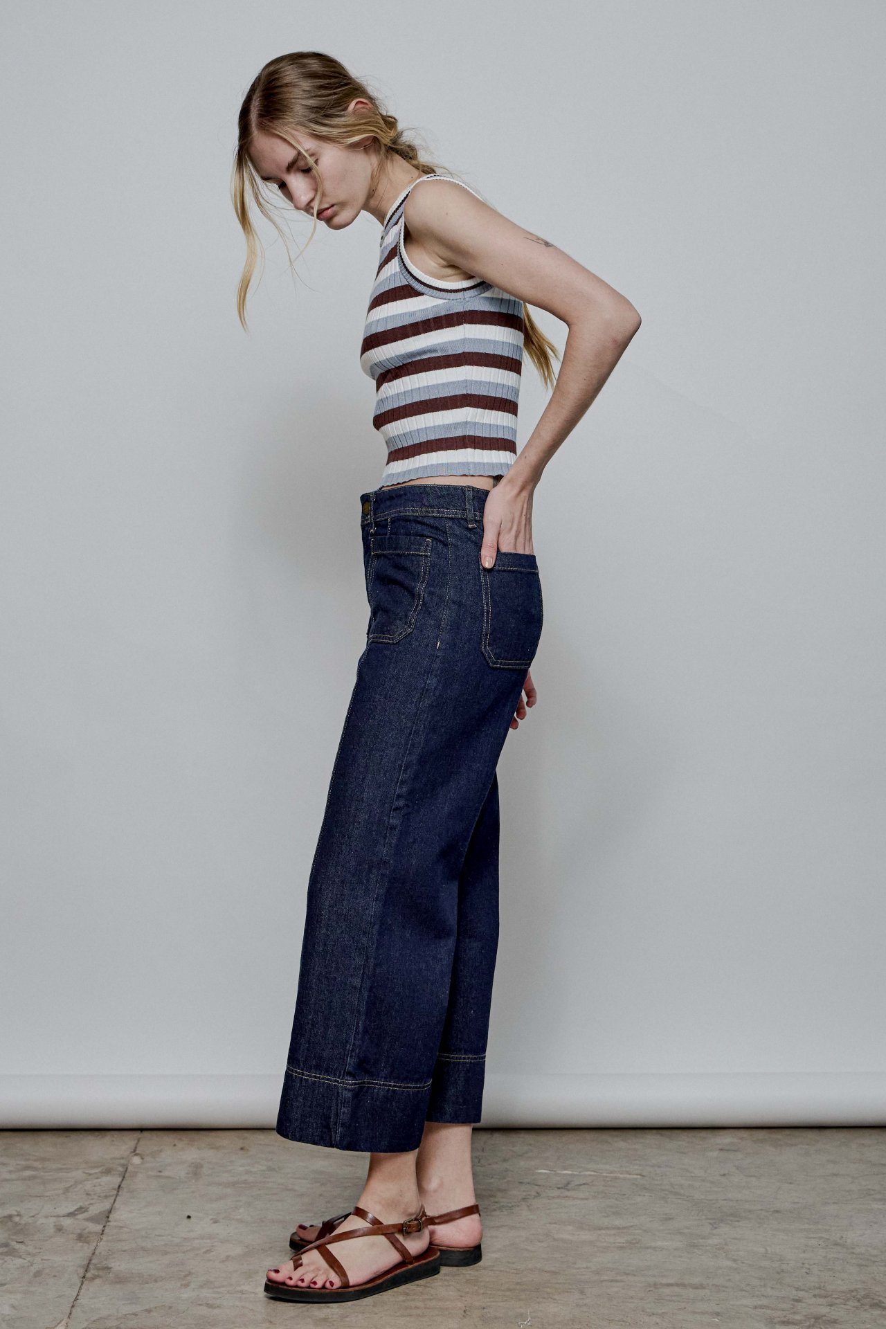 Jeans crop de tiro medio con bolsillos plaqué en delantero y