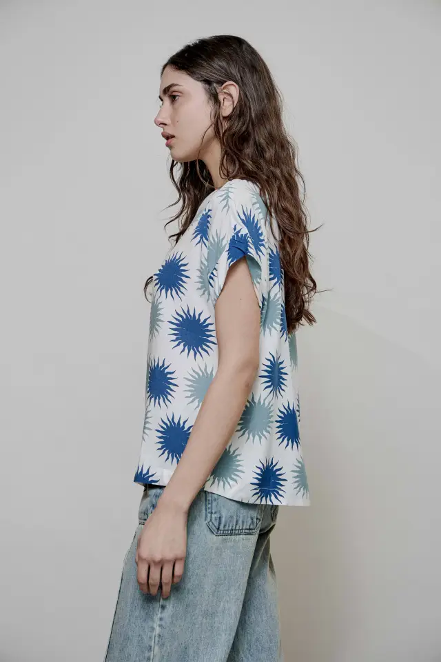 Blusa con manga incorporada y escote bote. Posee ruedo