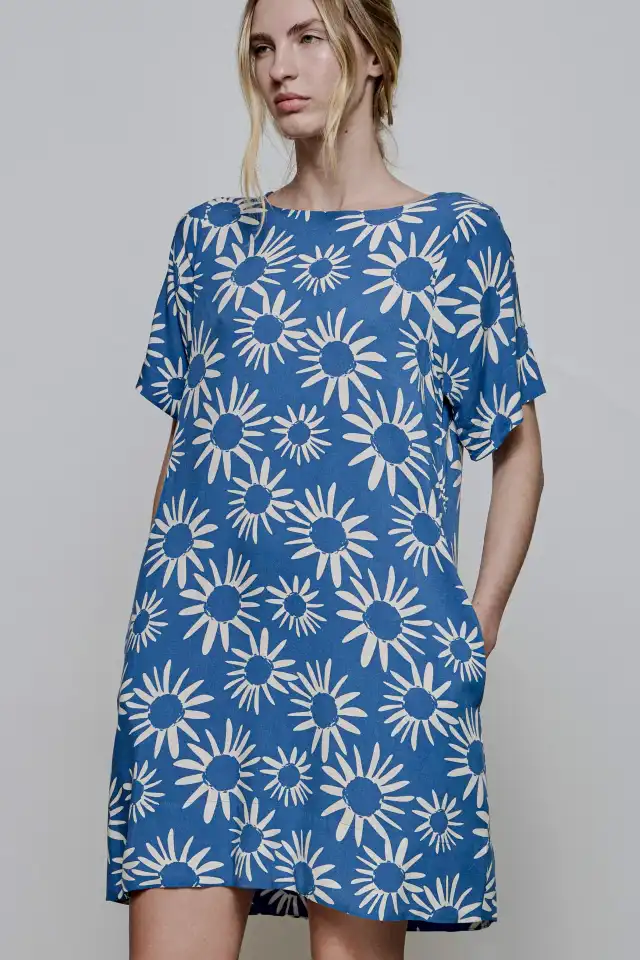 Vestido estampado corto con manga corta y escote