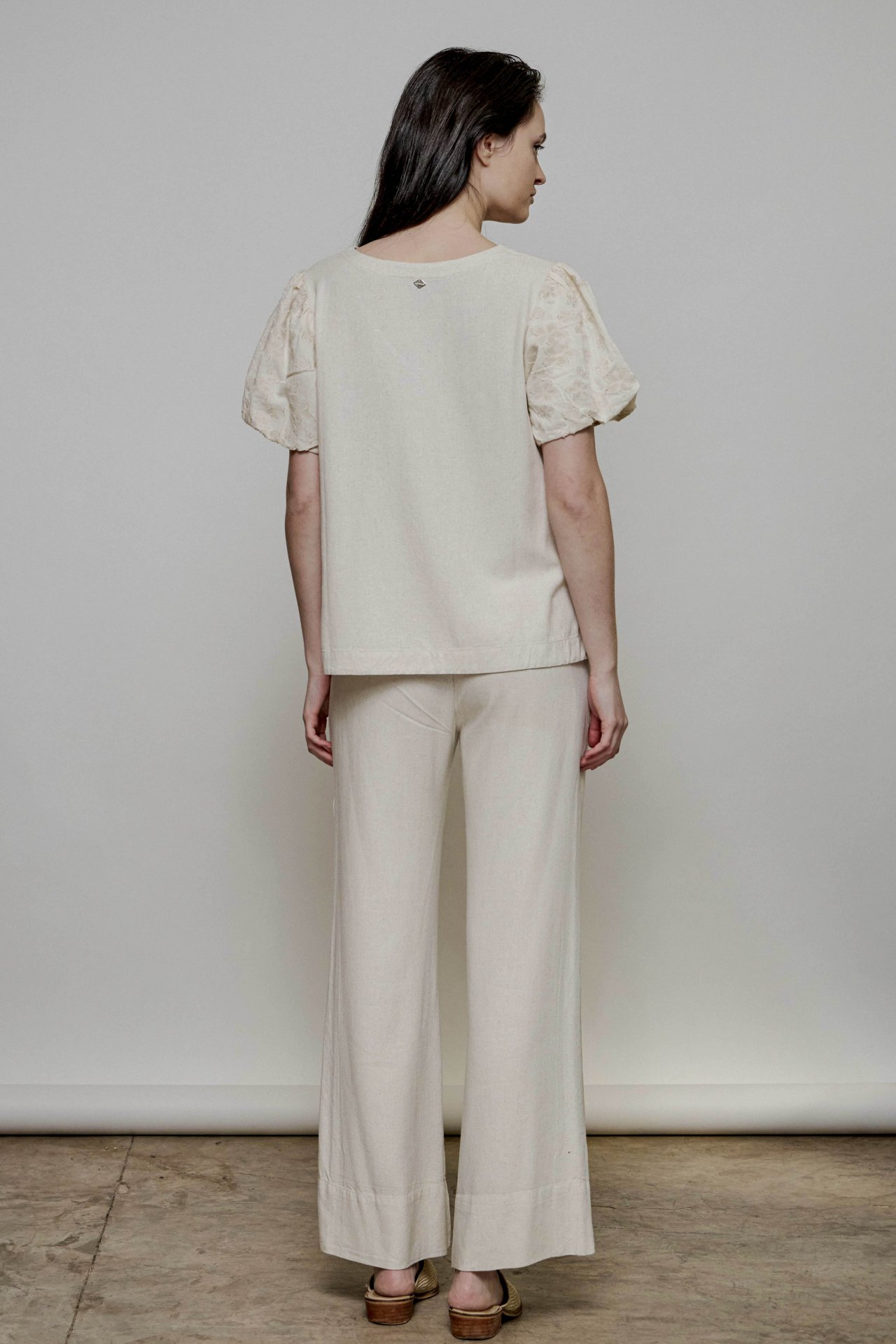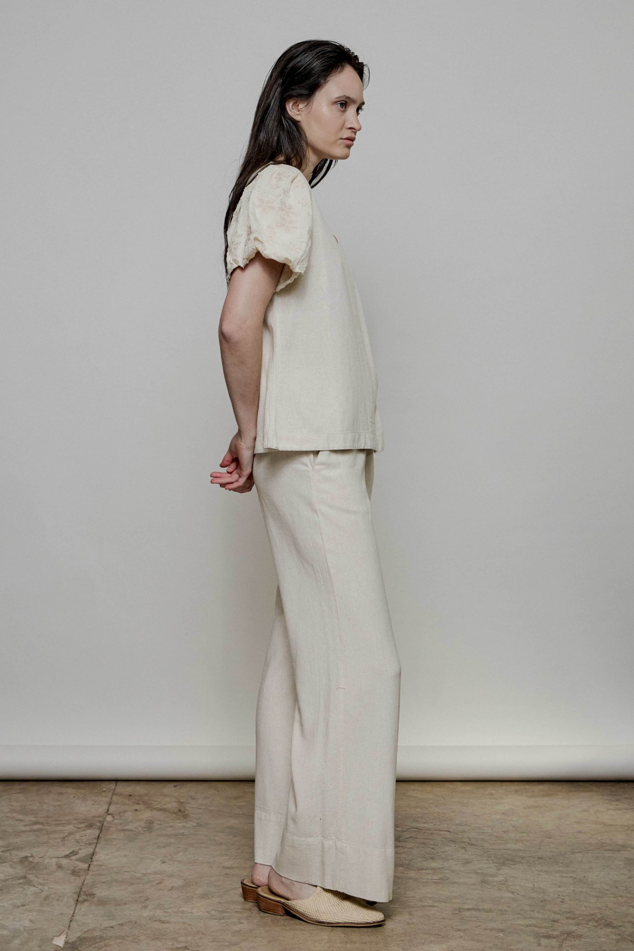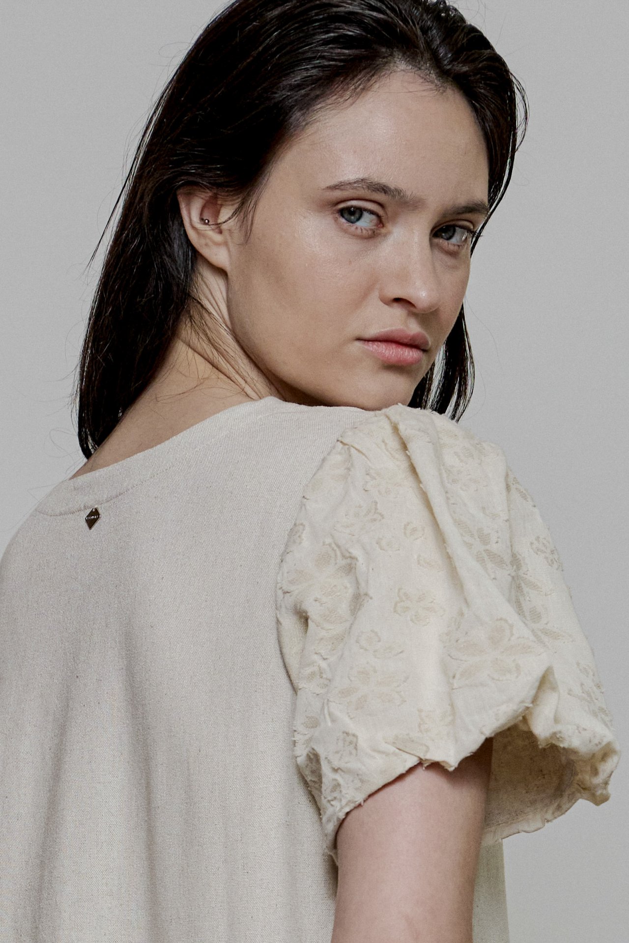 con dibujo de flores. Confeccionada en un tejido 55% lino,