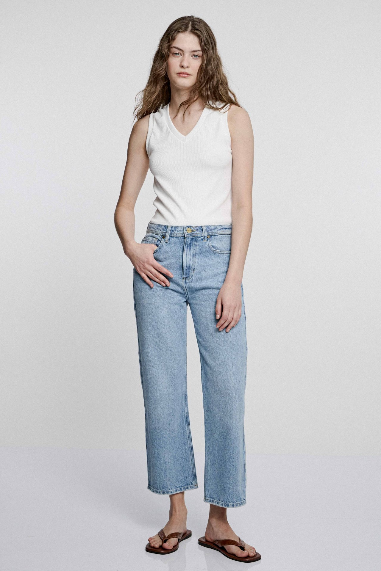 Top musculosa escote en v, confeccionado con género de punto, compuesto por 64% poliéster 28% rayón 8% spandex. De silueta Slim, esta prenda se adhiere al cuerpo, cuenta con un escote en V alto. El textil tiene buena elasticidad