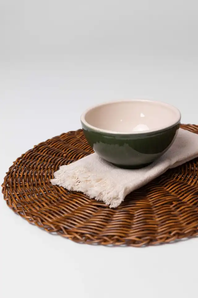 Individual-posa bandeja símil ratán de pu. Disponible en dos tonos. Medidas:35cm