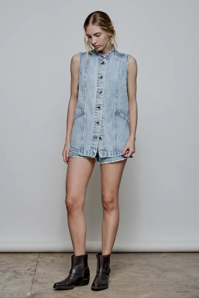 Chaleco jeanero confeccionado en denim rígido 100%