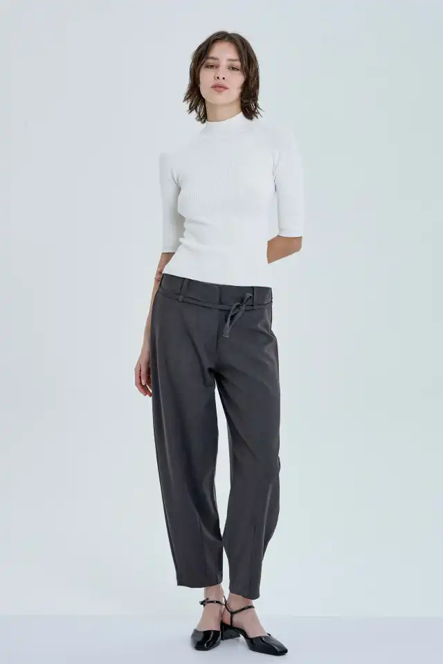 Pantalón sastrero tipo balloon confeccionado con 63 % poliester, 33 % rayón
