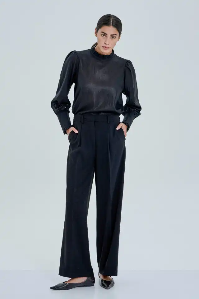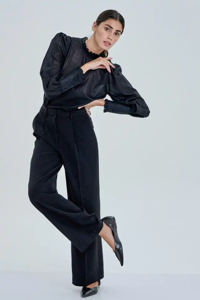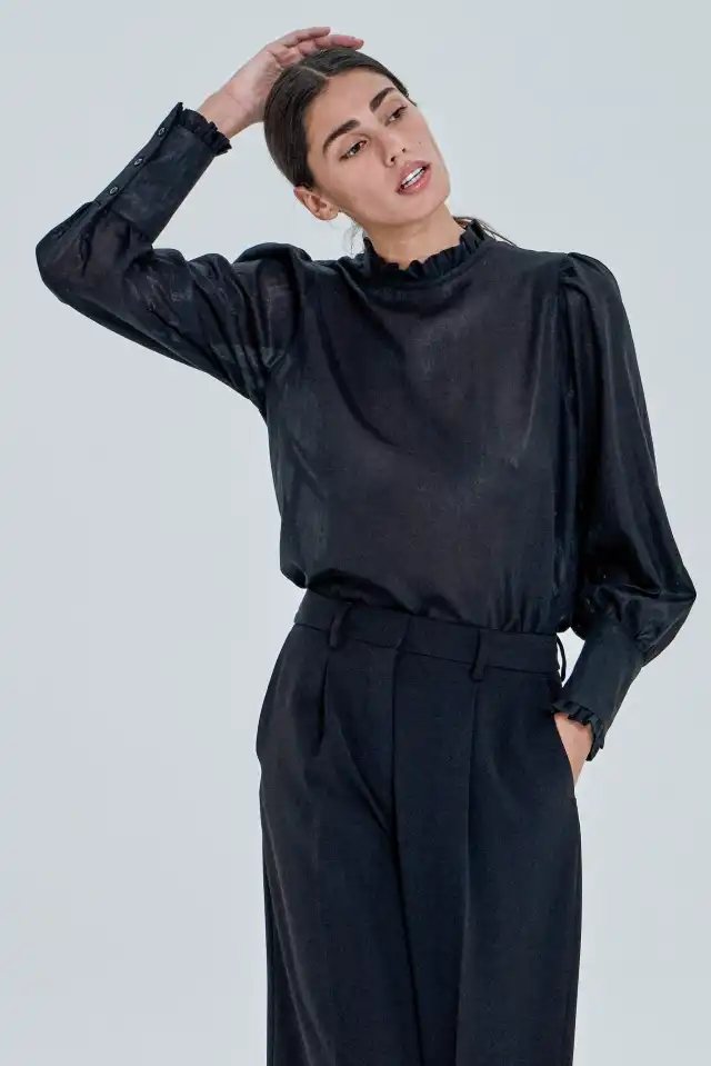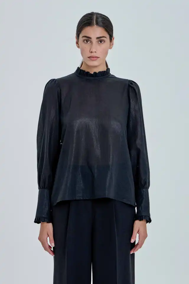Blusa de estilo romántico confeccionada en voil con foil con un leve brillo (80%