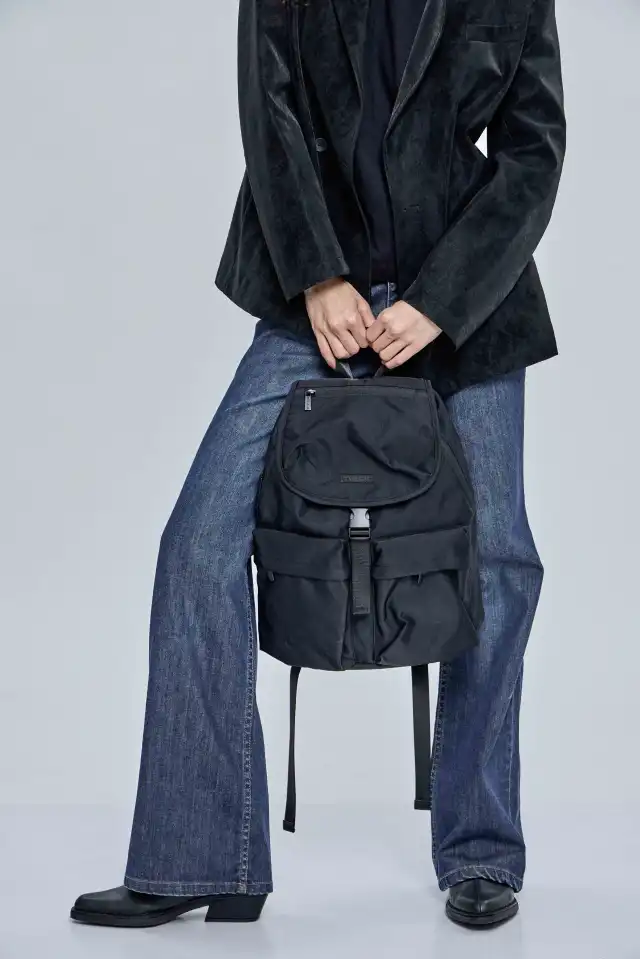 Mochila en 100% sintetico impermeable, con dos bolsillos en delantero y uno