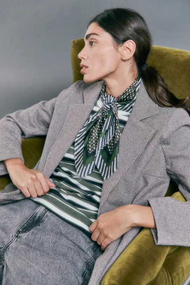 Pañuelo simil seda estampado, disponible en unica de color. Combina diseños