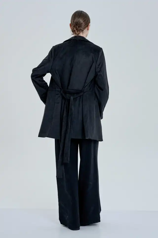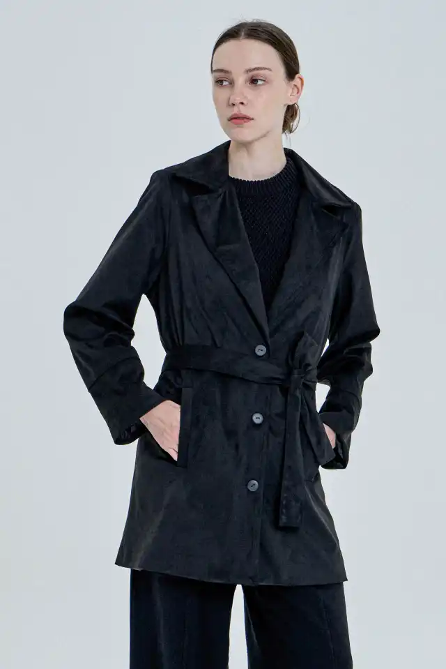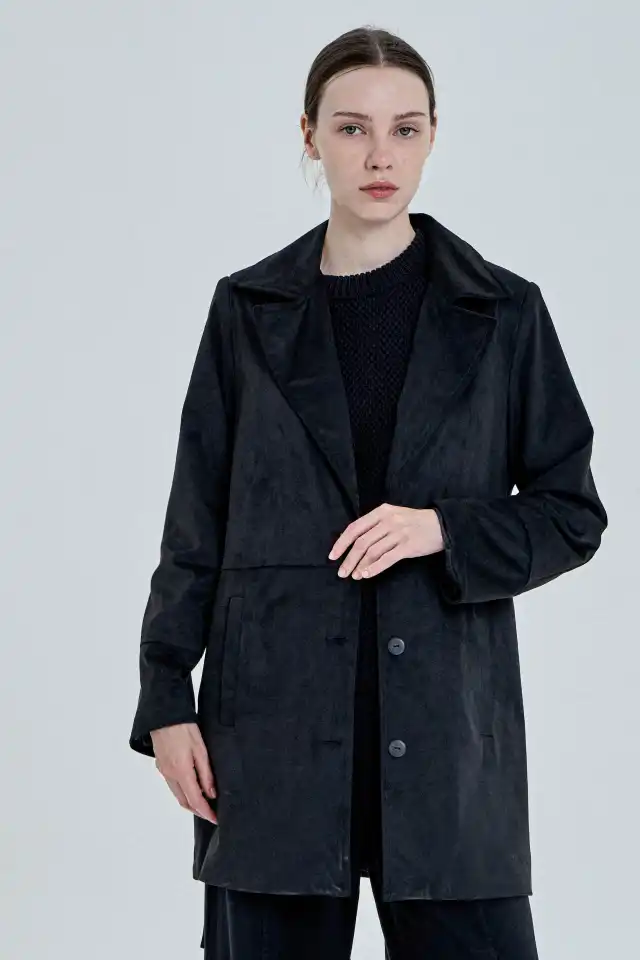 Saco confeccionado en simil gamuza, 94 % poliéster y 6 % spandex. Posee dos