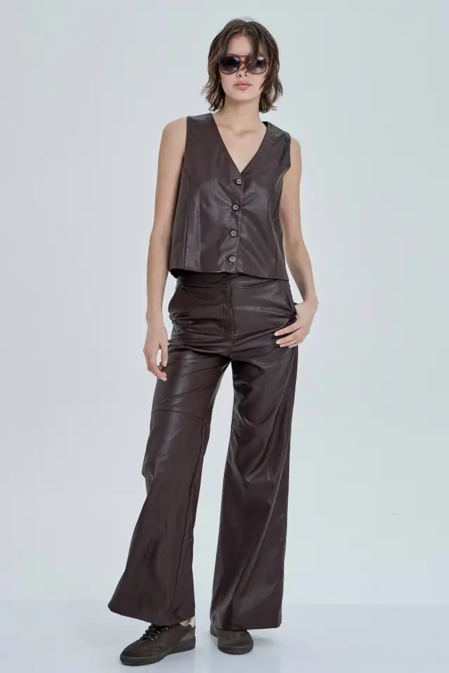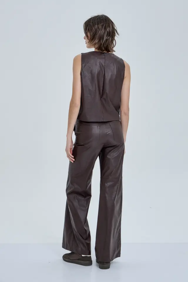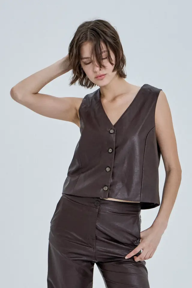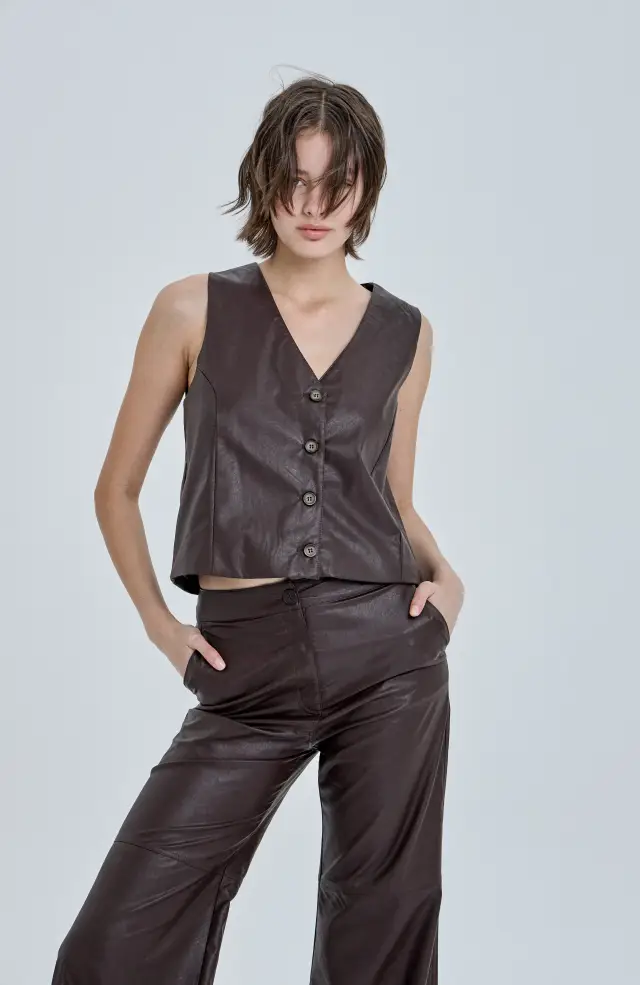 Chaleco sastrero con abotonadura frontal confeccionado en símil cuero 100 %
