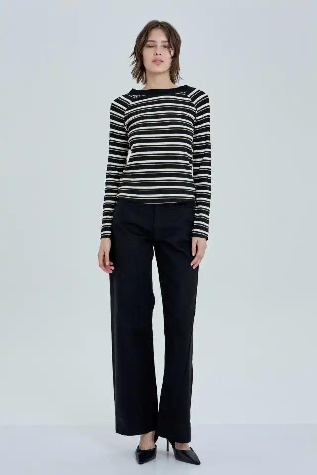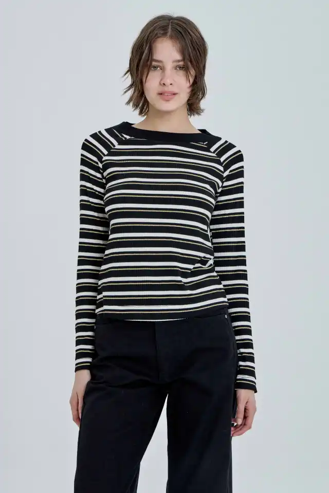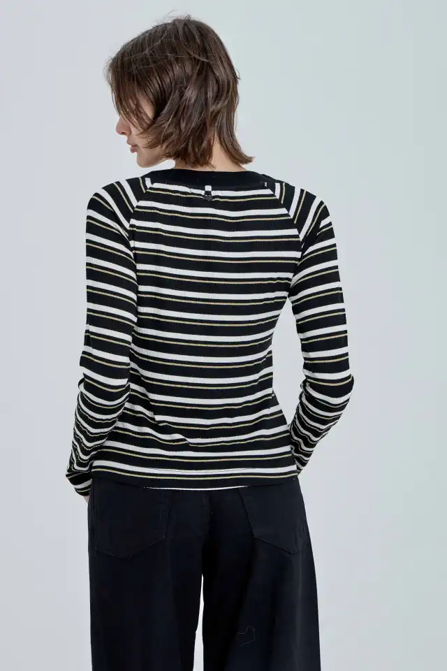 rib negro. Mangas largas regulares. En tono negro y blanco, tiene ademas, una