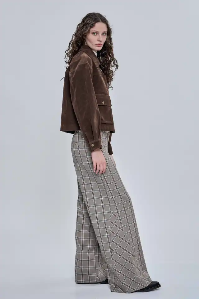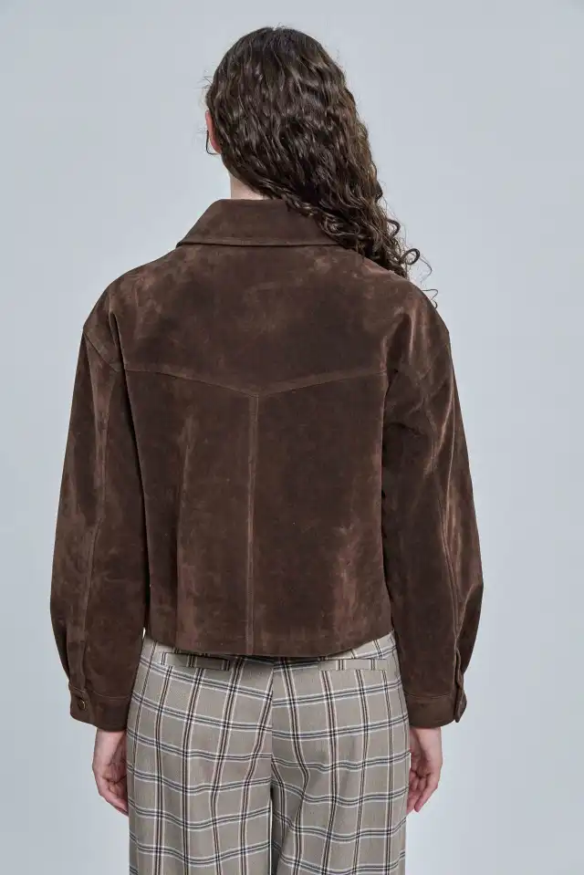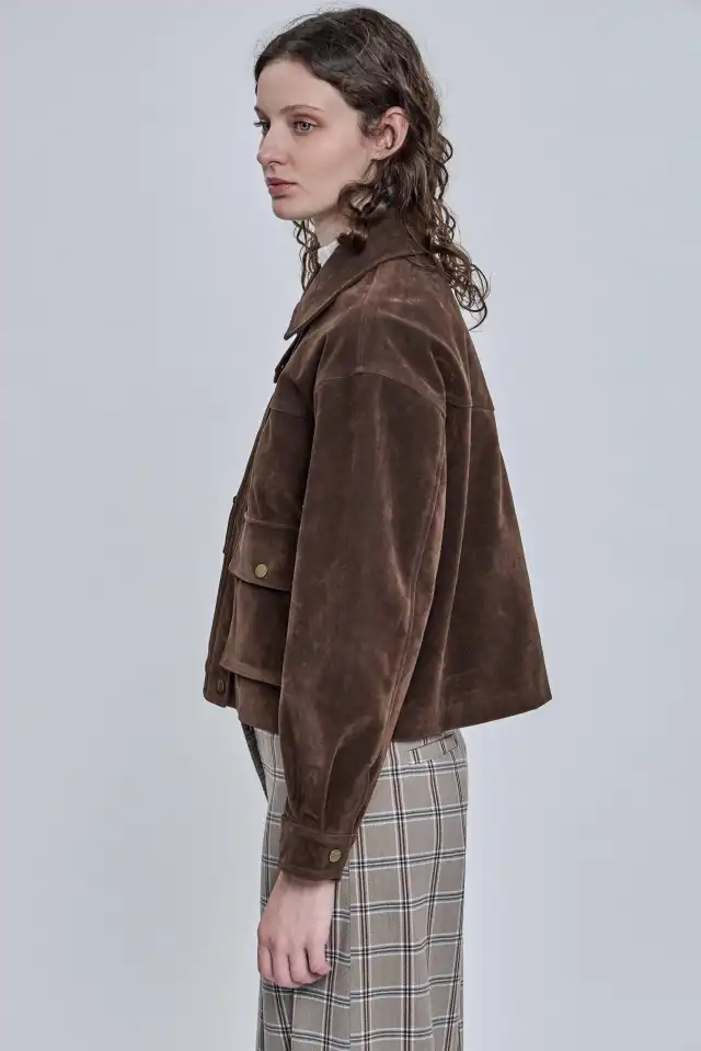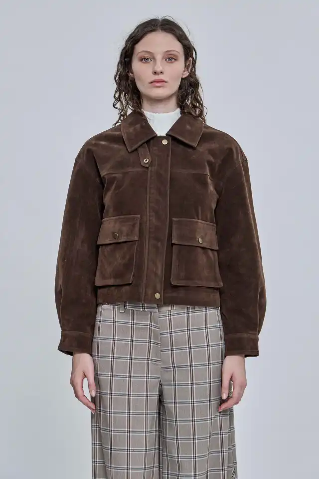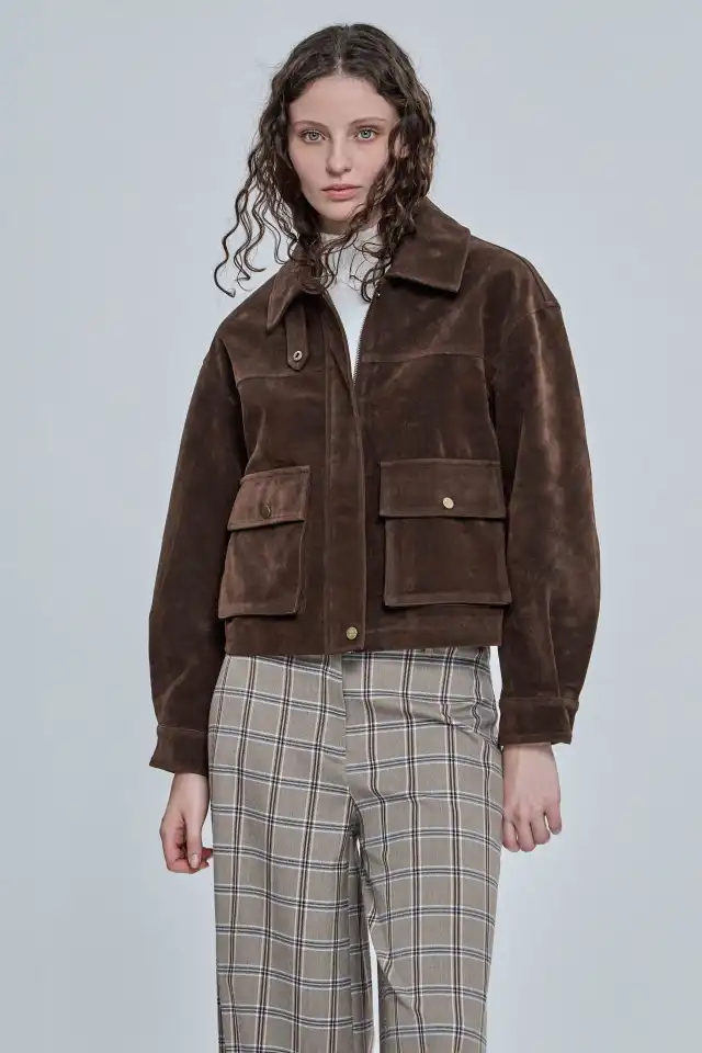 Chaqueta confeccionada en símil gamuza 100 % PU. Posee bolsillos plaqué con