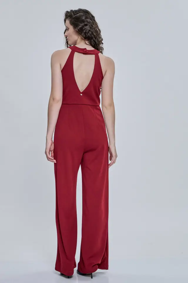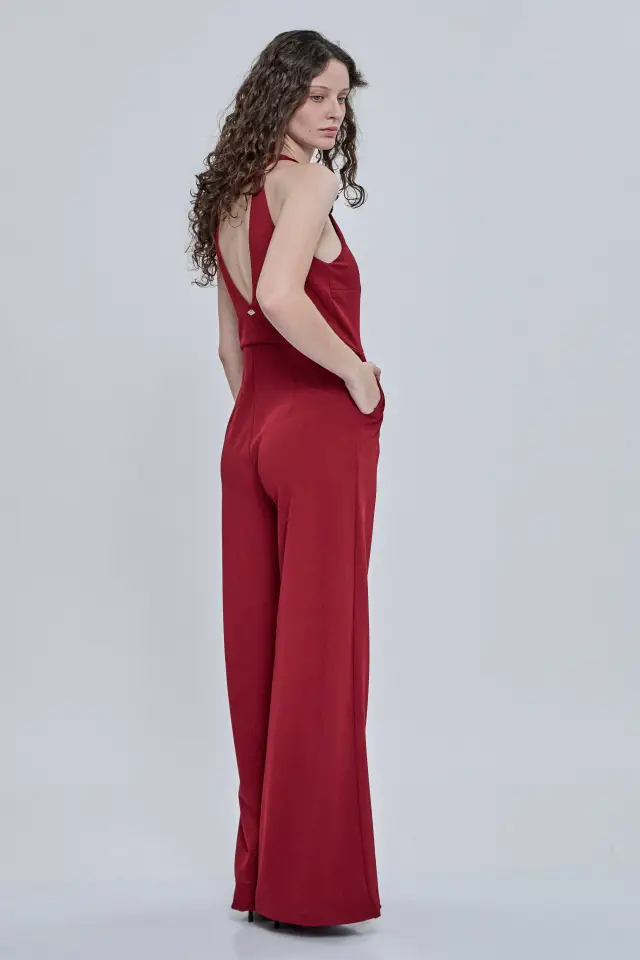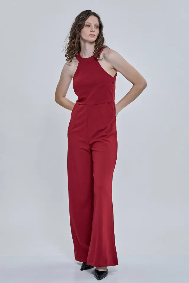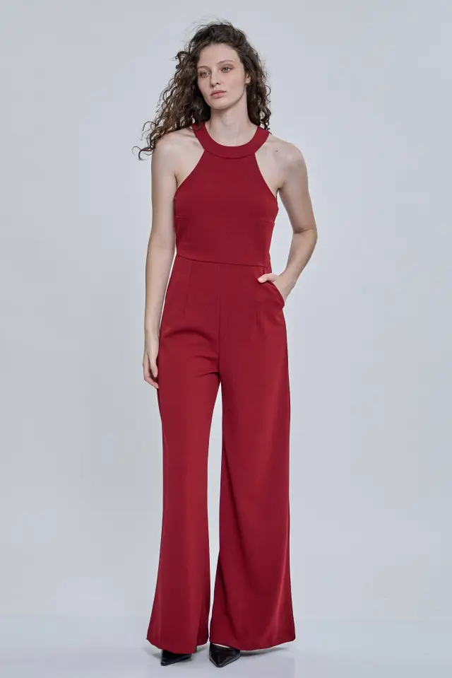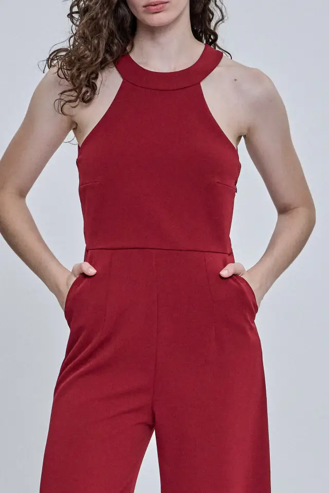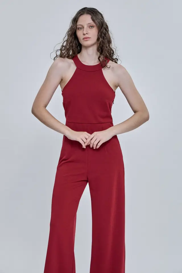 Mono de noche largo, confeccionado 95% poliéster y 5% spandex. Escote halter
